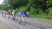 Первую половину гонки я ехал во второй группе, в подъем стрельнул и добрал первую группу из 3-х молодых гонцов. Проработав с ними пару прямых, понял, что с ними дальше ловить нечего - сил уходит много, а шансов, что нас догонят преследователи все больше. Поэтому сиюминутно мной было принято решение вернуться обратно во вторую группу, где вместе со мной было 6 человек, работать там было легче и приятнее. Накрутив себе кино, что я еду кросс-кантри, отрабатывал смену за сменой. Мы съели отрыв и просеяли нашу группу. Две прямые терпел и болтался из последних сил, на спуске восстанавливался, из поворота стрелял вместе со всеми, в подъем ехал уверенно, и сильно не рвал, чтобы на фоне других не выделятся и чуть экономить силы.